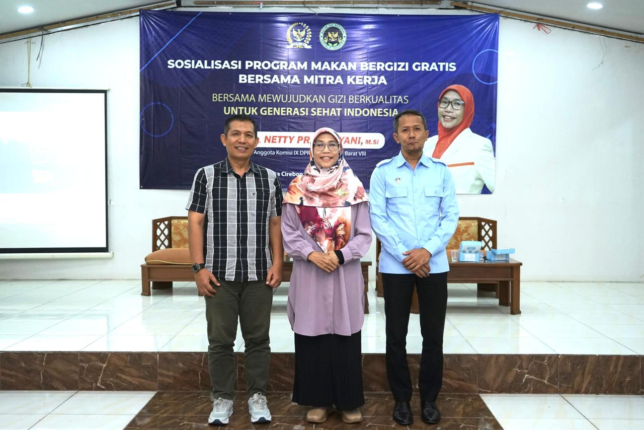 Sosialisasi program MBG kali ini digelar di Saladara Convention Hall, Kota Cirebon pada Kamis, (29/10). Acara ini dihadiri oleh Anggota Komisi IX DPR RI, Netty Prasetiyani, Anggota DPRD Kota Cirebon, Yusuf, serta Tenaga Ahli Direktorat Promosi & Edukasi Gizi BGN, Teguh Suparngadi.